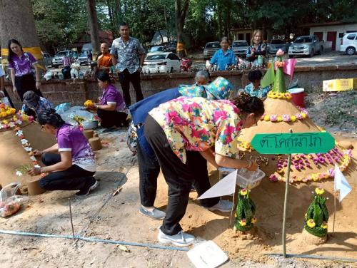 ในการแข่งขันครั้งนี้ แต่ละตำบลได้ร่วมใจกันสร้างสรรค์เจดีย์ทรายอย่างประณีตสวยงาม